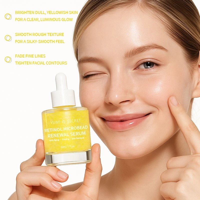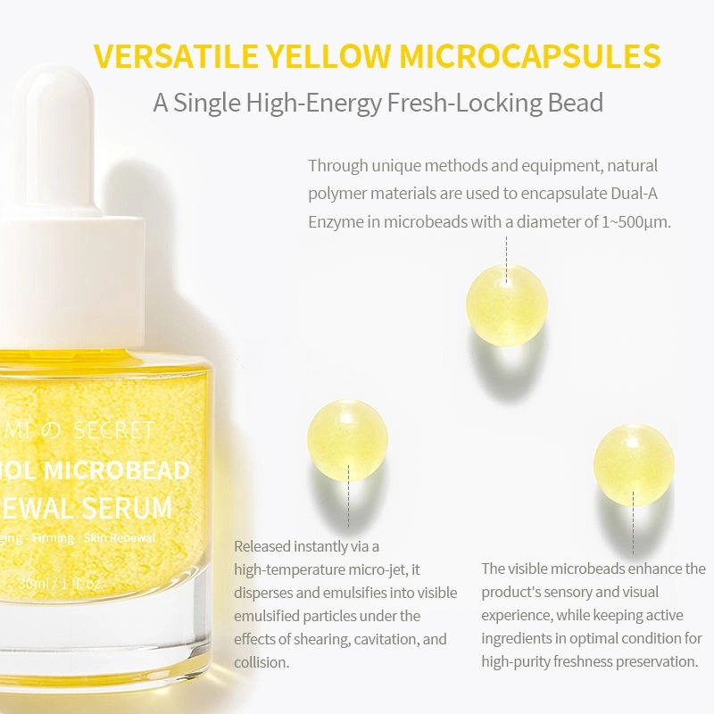 Ce sérum régénérant au rétinol et aux microbilles est un soin haute performance conçu pour lutter contre le vieillissement cutané et raffermir la peau. Grâce à une technologie de microencapsulation innovante qui préserve l'activité du rétinol, il libère ses actifs au contact de la peau pour une pénétration optimale. Sa formule unique associe extrait de boswellia, peptides de collagène, aloe vera et bêta-glucane d'avoine, agissant en synergie pour des bienfaits essentiels : réduction des ridules, raffermissement de la peau, teint plus lumineux et uniforme, hydratation et réparation, et renforcement de la barrière cutanée. Sa texture légère à base d'eau convient à tous les types de peau. Ce produit est compatible avec les services de personnalisation OEM/ODM.