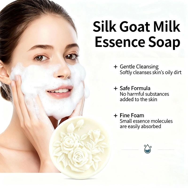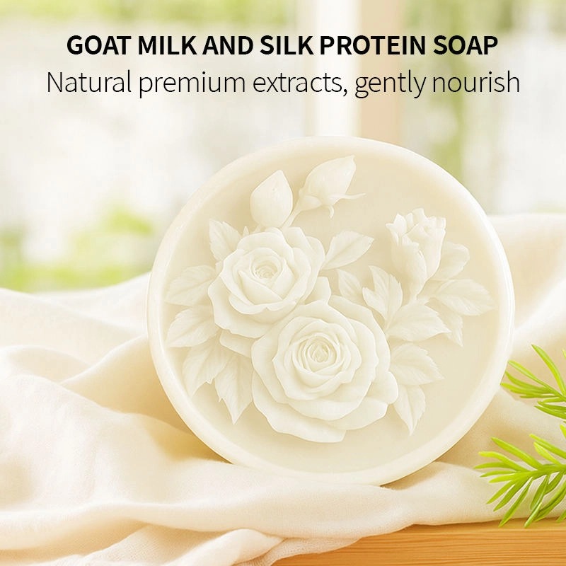 Notre savon au lait de chèvre et aux protéines de soie est un soin complet pour la peau. Enrichi en lait de chèvre et en protéines de soie, il nettoie en profondeur, illumine, hydrate et combat l'acné. Doux pour tous les types de peau, il convient au visage et au corps et arbore un élégant motif de rose sculptée en 3D.
