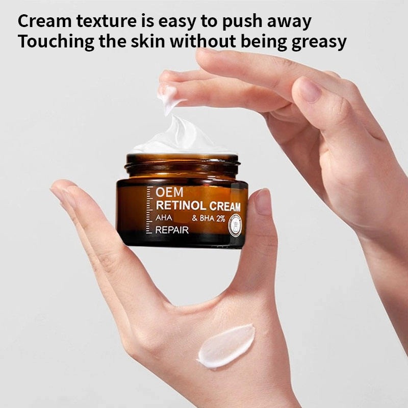 Crème au rétinol certifiée SGS (OEM) avec 2 % d'AHA et de BHA, offrant un éclaircissement visible et une réduction des taches en 4 semaines. Formulée pour un teint plus clair de 139 %, des rougeurs atténuées de 11,63 % et une absorption transdermique améliorée de 109 %, elle convient aux peaux sensibles grâce à sa texture non grasse et à absorption rapide, pour un usage quotidien. Personnalisation complète OEM/ODM disponible pour votre marque privée.