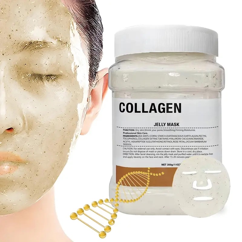 Poudre pour masque gélifié, fournie directement par le fabricant, qui forme un masque hydrogel lisse et détachable une fois mélangée à de l'eau, convenant à un usage commercial en salon de beauté/spa et aux soins de la peau à domicile.